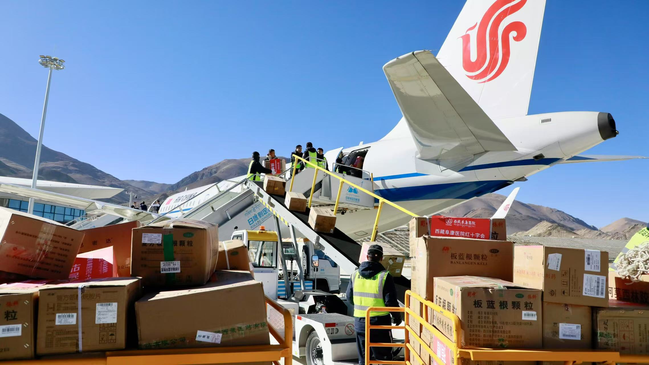 西藏日喀則地震發(fā)生后,中航集團第一時間啟動應急機制,調(diào)整航班計劃,全力保障抗震救災運輸。圖為2025年1月9日,中航集團飛機載著救援人員和物資奔赴災區(qū)。