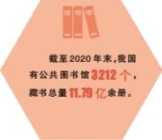 數(shù)據(jù)統(tǒng)計(jì),截至2020年末,我國有公共圖書館3212個(gè),藏書總量11.79億余冊,實(shí)際使用房屋建筑面積1785.77萬平方米,平均每萬人公共圖書館建筑面積為126.49平方米。