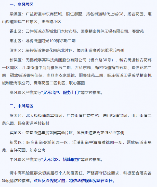 江蘇無錫新增7名陽性人員 重新調(diào)整風(fēng)險區(qū)域