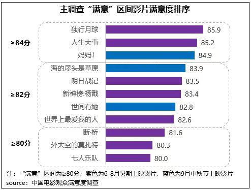 中國電影觀眾滿意度調(diào)查:近三個月15部影片中有13部進(jìn)入“滿意”區(qū)間
