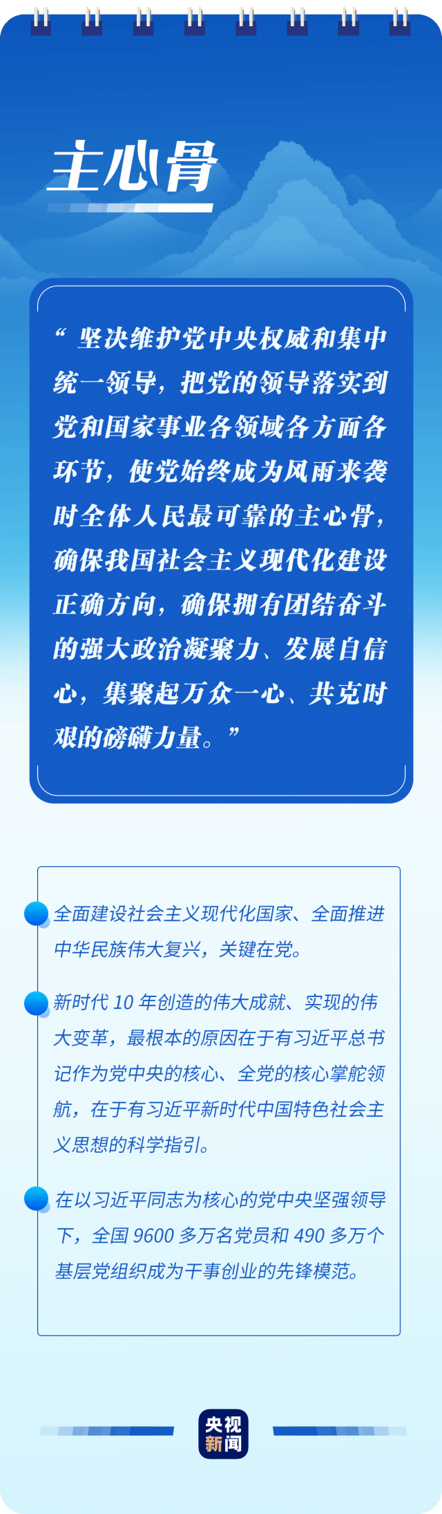 “只有植根本國(guó)、本民族歷史文化沃土,馬克思主義真理之樹(shù)才能根深葉茂”“使黨始終成為風(fēng)雨來(lái)襲時(shí)全體人民最可靠的主心骨”“只要存在腐敗問(wèn)題產(chǎn)生的土壤和條件,反腐敗斗爭(zhēng)就一刻不能停,必須永遠(yuǎn)吹沖鋒號(hào)”……