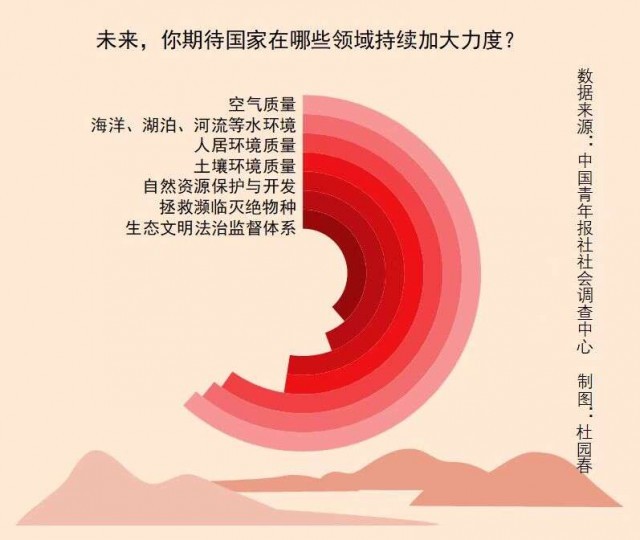 上周,中國(guó)青年報(bào)社社會(huì)調(diào)查中心聯(lián)合問卷網(wǎng)(wenjuan.com),對(duì)2005名受訪者進(jìn)行的一項(xiàng)調(diào)查顯示,受訪者期待未來(lái)在空氣質(zhì)量、水環(huán)境質(zhì)量、人居環(huán)境質(zhì)量等領(lǐng)域持續(xù)加大治理力度。94.9%的受訪者相信我國(guó)生態(tài)環(huán)境質(zhì)量會(huì)持續(xù)向好。