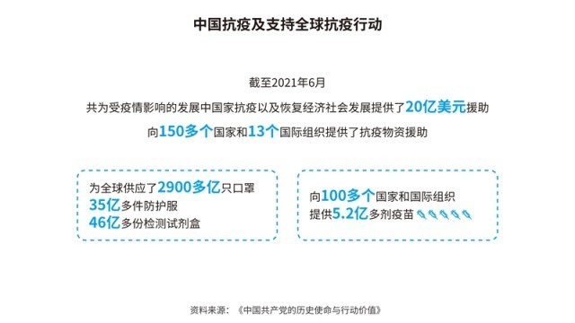 中國先后批準(zhǔn)或加入了30余項國際人權(quán)文書,其中包括6項聯(lián)合國核心人權(quán)條約;累計共向166個國家和國際組織提供了援助,派遣60多萬名援助人員;多次無條件免除重債窮國和最不發(fā)達(dá)國家對華到期政府無息貸款債務(wù)。在聯(lián)合國維和行動中,中國是安理會常任理事國第一大出兵國,30多年來累計派出維和官兵5萬余人次。共建“一帶一路”已成為助力各國發(fā)展、深受世界歡迎的新興國際公共產(chǎn)品,據(jù)世界銀行研究報告,到2030年,將使相關(guān)國家760萬人擺脫極端貧困、3200萬人擺脫中度貧困。新冠肺炎疫情暴發(fā)以來,中國努力促進(jìn)新冠疫苗在全球范圍內(nèi)公平合理分配,成為全球?qū)ν馓峁┮呙鐢?shù)量最多的國家。