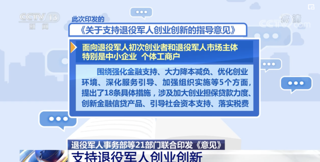 退役軍人事務(wù)部等21部門聯(lián)合印發(fā)《意見(jiàn)》 支持退役軍人創(chuàng)業(yè)創(chuàng)新