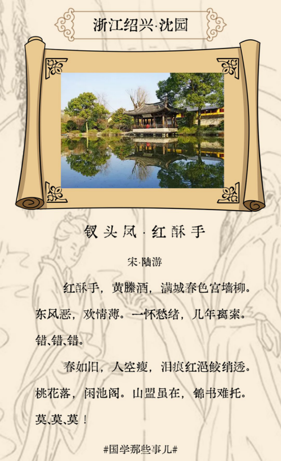 當(dāng)文人墨客于某一個(gè)地點(diǎn)緣事抒情,詩詞中飽含的情感伴隨著詩詞名篇穿越千古,讓我們?cè)谝髟亣@息間與詩人同悲同喜,其抒懷之地也名聞天下,成為后人追懷仰止的著名景點(diǎn)。當(dāng)我們站在古人曾佇立的地方,或憑欄遠(yuǎn)眺、或泛舟湖上......或許更能感知詩人寫下千古名篇時(shí)的那一份心緒。(中青報(bào)·中青網(wǎng)見習(xí)記者 馮云慧 實(shí)習(xí)生 方淑睿)