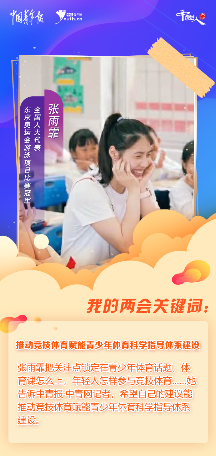 奧運會冠軍如何履職?張雨霏把關注點鎖定在青少年體育話題,體育課怎么上,年輕人怎樣參與競技體育……她告訴中青報·中青網記者,希望自己的建議能推動競技體育賦能青少年體育科學指導體系建設。