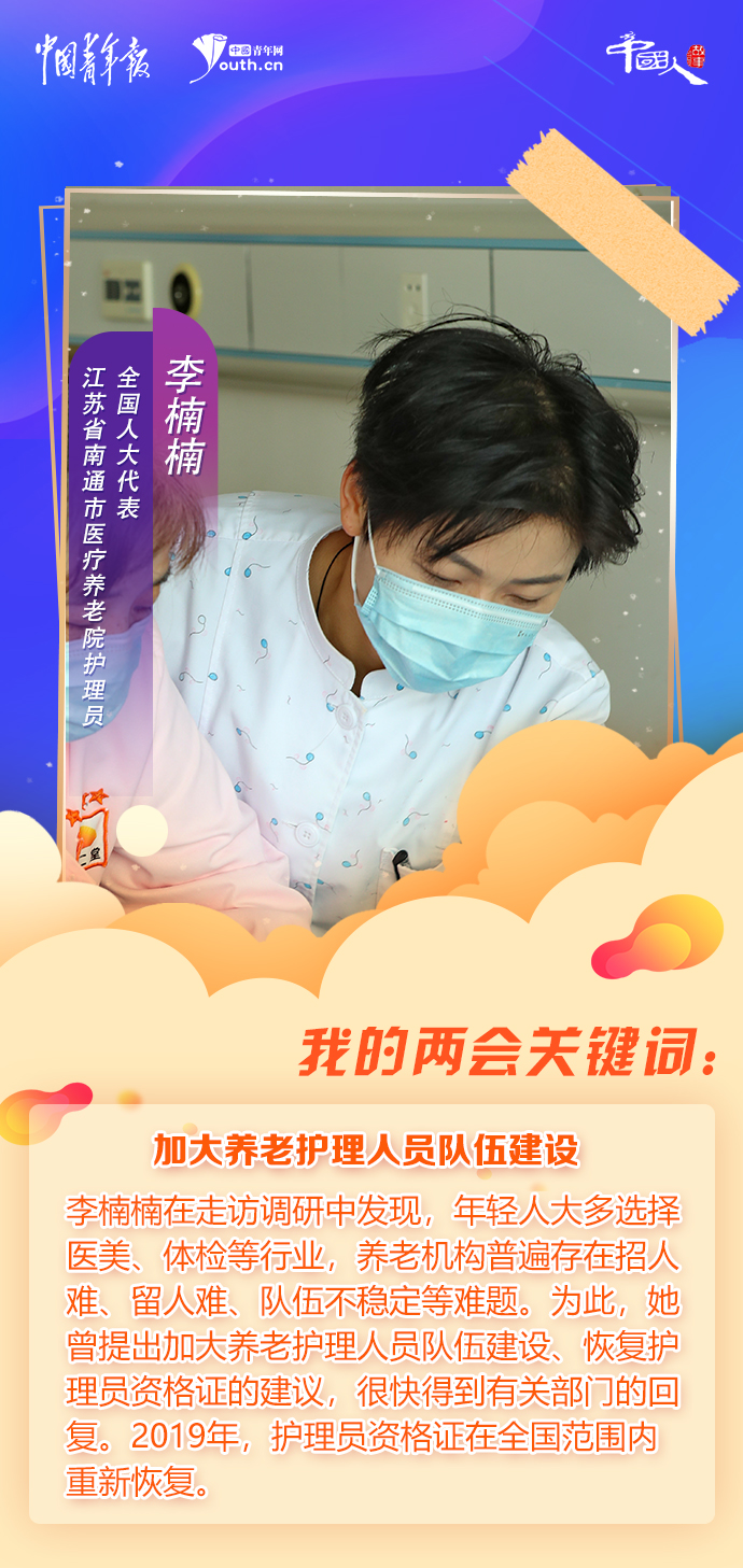 同樣是連任的全國人大代表,李楠楠投身養(yǎng)老護理行業(yè)已有10年。此前5年的履職經歷,讓她深刻感受到一份建議能帶來的改變。