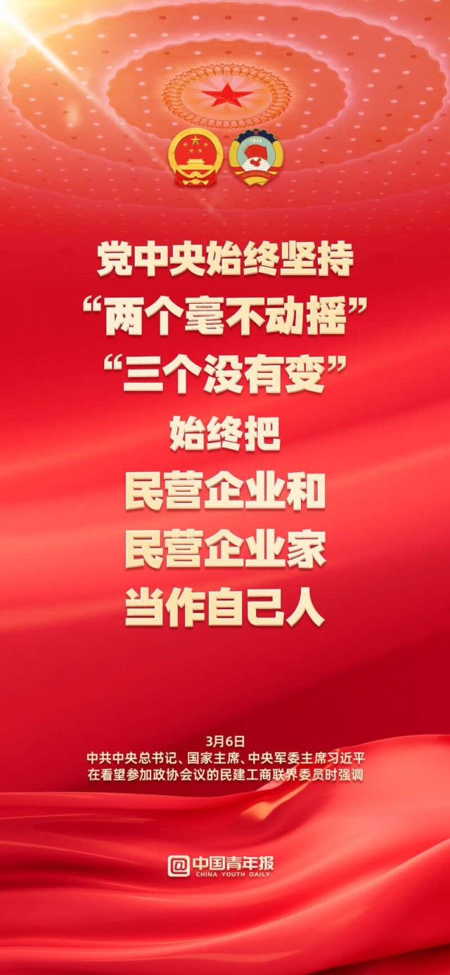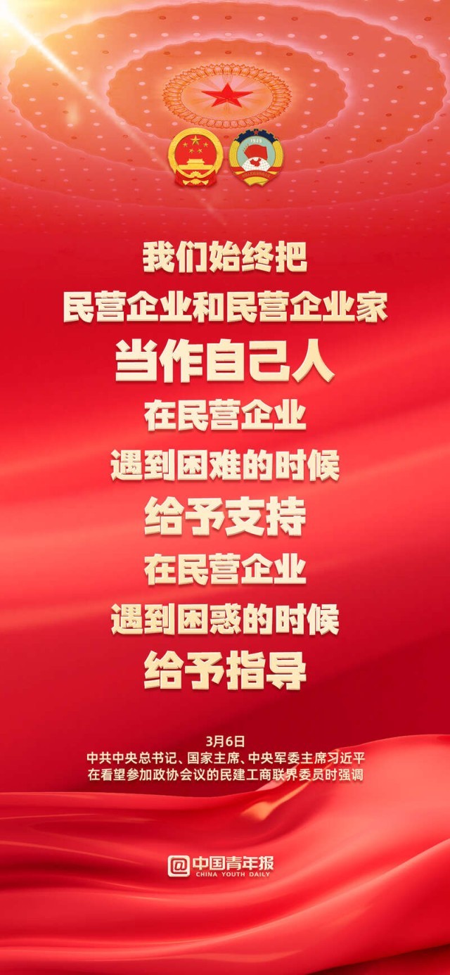 “始終把民營企業(yè)和民營企業(yè)家當(dāng)作自己人”;“無論是國有企業(yè)還是民營企業(yè),都是促進共同富裕的重要力量,都必須擔(dān)負(fù)促進共同富裕的社會責(zé)任?!?月6日下午,習(xí)近平總書記在看望參加政協(xié)會議的民建工商聯(lián)界委員時強調(diào),要正確引導(dǎo)民營經(jīng)濟健康發(fā)展高質(zhì)量發(fā)展。關(guān)于民營企業(yè)和民營企業(yè)家,總書記作出哪些重要論述,轉(zhuǎn)存金句,共同學(xué)習(xí)