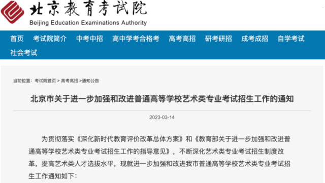 北京:2024年起6個(gè)藝術(shù)類專業(yè)實(shí)施全市統(tǒng)考