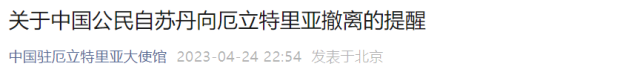 駐蘇丹、埃及使館提醒計劃自行撤離赴埃及的中國公民: