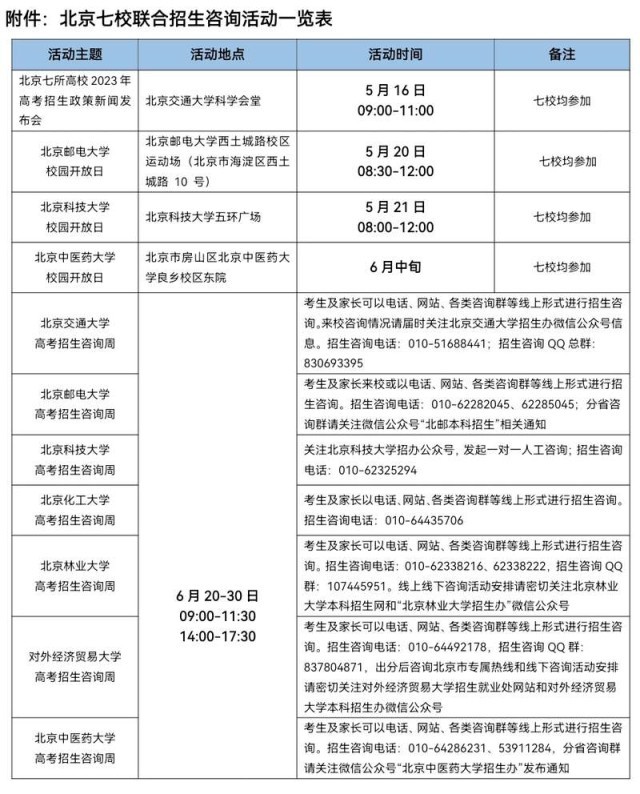 中國(guó)青年報(bào)客戶端北京5月16日電(中青報(bào)·中青網(wǎng)記者 葉雨婷 實(shí)習(xí)生 王浩昆)今天,北京交通大學(xué)、北京郵電大學(xué)、北京科技大學(xué)、北京化工大學(xué)、北京林業(yè)大學(xué)、對(duì)外經(jīng)濟(jì)貿(mào)易大學(xué)、北京中醫(yī)藥大學(xué)七所北京高校在北京交通大學(xué)舉辦高考招生政策新聞發(fā)布會(huì),向社會(huì)各界發(fā)布了七校高考招生信息,全面解讀了七校辦學(xué)特色、優(yōu)勢(shì)專業(yè)、招生錄取政策以及招生咨詢活動(dòng)方案等。