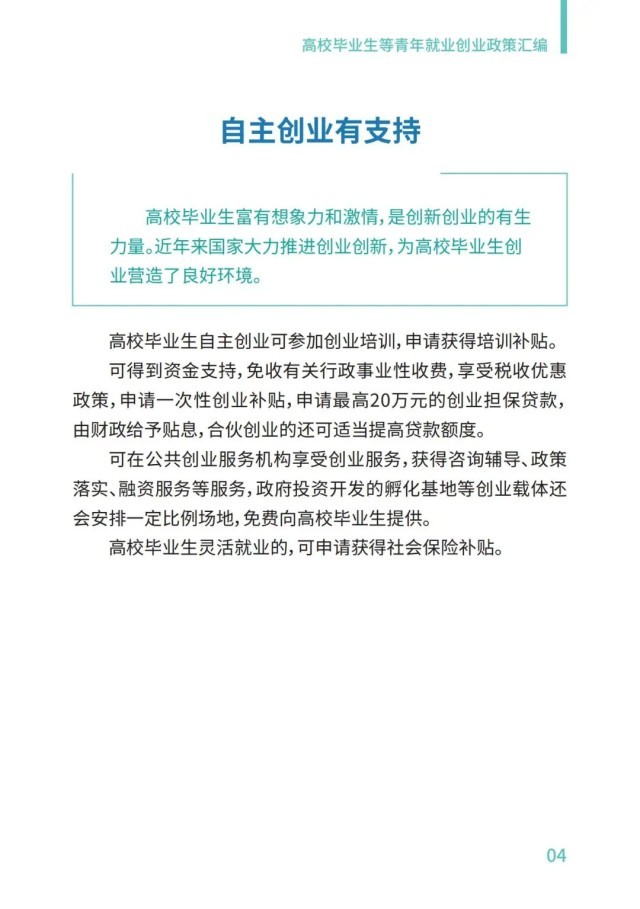 為貫徹落實(shí)黨中央、國(guó)務(wù)院關(guān)于高校畢業(yè)生就業(yè)創(chuàng)業(yè)工作的決策部署,教育部高校學(xué)生司會(huì)同相關(guān)部門編印了《高校畢業(yè)生等青年就業(yè)創(chuàng)業(yè)政策匯編》,幫助廣大高校畢業(yè)生和用人單位知曉政策、享受政策,更好助力高校畢業(yè)生就業(yè)創(chuàng)業(yè)。和教育小微一起看——
