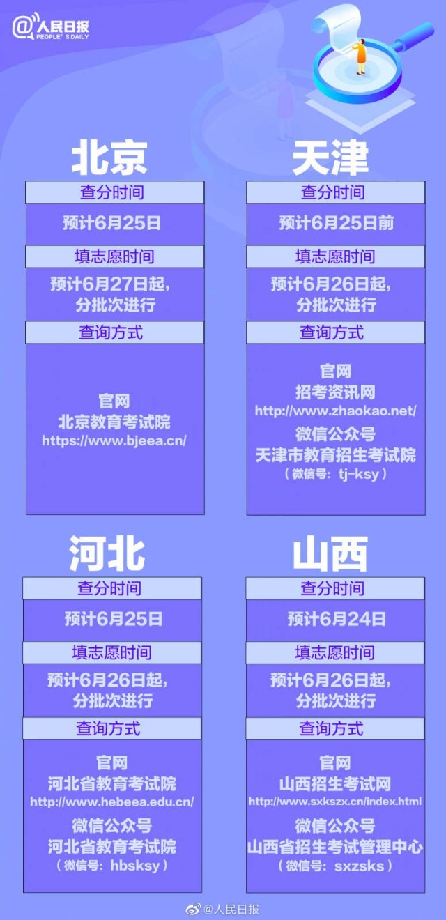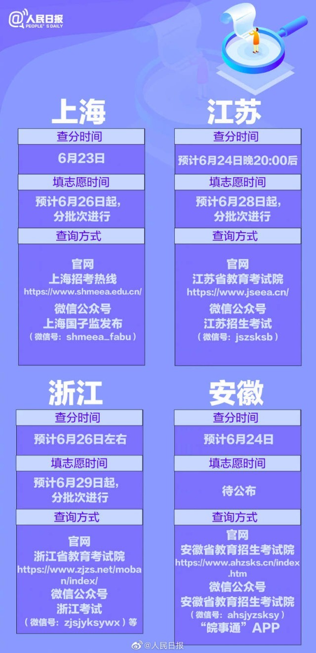 6月23日起,各地高考成績陸續(xù)公布,同時,多個省區(qū)市的志愿填報安排也已公布。@ 1291萬考生,你們準備好了嗎?31省份報志愿時間全匯總↓↓??忌鸢耦}名,愿劈波斬浪,繼續(xù)精彩!