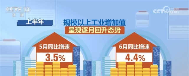 數(shù)據(jù)二:增長3.8%。工業(yè)和信息化部7月19日介紹,隨著3月份以來一批穩(wěn)經(jīng)濟政策效果持續(xù)顯現(xiàn),今年上半年,我國規(guī)模以上工業(yè)增加值同比增長3.8%,工業(yè)經(jīng)濟恢復向好。其中,5月、6月當月同比增速分別為3.5%、4.4%,呈現(xiàn)逐月回升態(tài)勢。工業(yè)投資保持擴張,上半年同比增長8.9%,增速較一季度加快0.3個百分點。