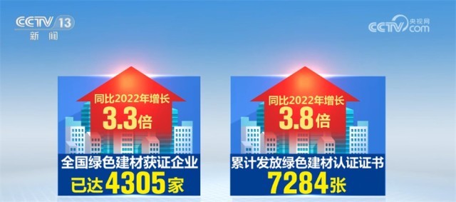 目前,全國綠色建材獲證企業(yè)已達到4305家,累計發(fā)放綠色建材認證證書7284張,同比2022年分別增長3.3和3.8倍。