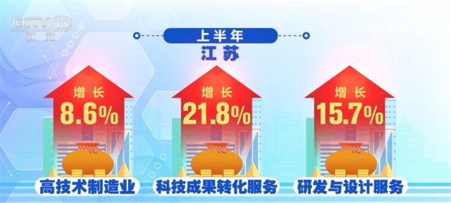 江蘇、浙江、安徽把創(chuàng)新當(dāng)做制造業(yè)升級的著力點。上半年,江蘇高技術(shù)制造業(yè)增長8.6%,科技成果轉(zhuǎn)化服務(wù)、研發(fā)與設(shè)計服務(wù)分別增長21.8%和15.7%。浙江上半年,科學(xué)研究和技術(shù)服務(wù)業(yè)投資增長52.2%。規(guī)模以上工業(yè)中,新產(chǎn)品產(chǎn)值率已經(jīng)達(dá)到41.4%,并在持續(xù)提高。安徽上半年裝備制造業(yè)增加值增長了15.3%,汽車產(chǎn)業(yè)增長42.6%,光伏產(chǎn)業(yè)增長了一倍。