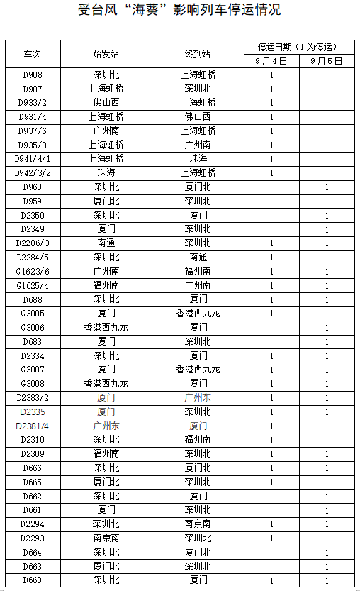受臺風(fēng)“??庇绊?鐵路部門停運途經(jīng)杭深鐵路部分旅客列車
