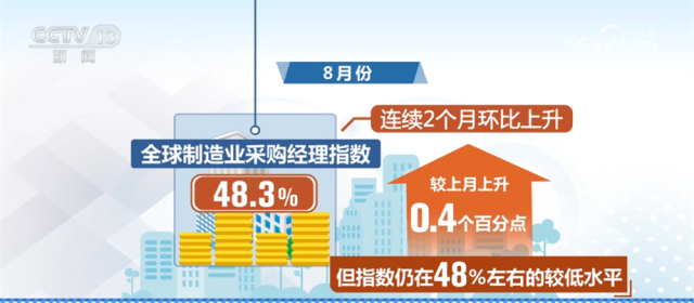 8月份全球制造業(yè)采購(gòu)經(jīng)理指數(shù)為48.3%,較上月上升0.4個(gè)百分點(diǎn),連續(xù)2個(gè)月環(huán)比上升,但指數(shù)仍在48%左右的較低水平,全球經(jīng)濟(jì)呈弱勢(shì)修復(fù)態(tài)勢(shì),總體趨緊的大環(huán)境沒有改變,需求收縮壓力仍然存在。