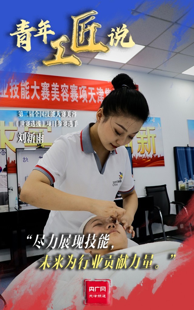 在天津,本屆全國技能大賽還將展開一場(chǎng)關(guān)于“美”的精彩比拼。即將參加美容(世賽選拔)項(xiàng)目的劉新雨正在集訓(xùn)基地中進(jìn)行訓(xùn)練。本次比賽內(nèi)容共設(shè)置了5個(gè)模塊及11個(gè)子模塊,高難度的比賽及細(xì)致的考核要求,對(duì)選手的素質(zhì)、體力和心理都是極大的挑戰(zhàn)?!拔夷軈⒓舆@個(gè)比賽感到很榮幸,通過比賽訓(xùn)練,既能考驗(yàn)自己的技能水平,又能開闊眼界?!眲⑿掠暾f,“在這個(gè)過程中,我也正不斷挑戰(zhàn)自我,發(fā)現(xiàn)新的自己?!?/p>
