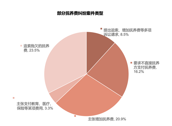 部分撫養(yǎng)費(fèi)糾紛案件類(lèi)型。北京青少年法律援助與研究中心供圖