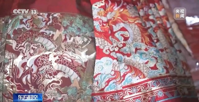 魏平安:因為今年過年是龍年,我們特意設(shè)計了兩款比較好看的龍圖案馬面裙,沒想到它們兩個都爆了。這款就是比較直接一點,就是有一個很大的龍的刺繡加了一些龍紋,加了一些花、牡丹花之類的。