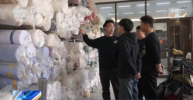 魏平安介紹,完備的產(chǎn)業(yè)鏈正是當年吸引他回鄉(xiāng)創(chuàng)業(yè)的重要原因之一。他建議我們?nèi)ッ媪陷o料一條街轉(zhuǎn)轉(zhuǎn),他說空著手在這走5公里就能做出一件漢服。而現(xiàn)在這里依然是他采購面料輔料的地方。