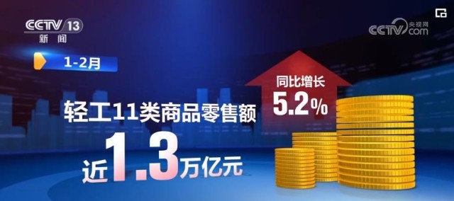 輕工消費(fèi)品市場(chǎng)活力逐步增強(qiáng)。前兩個(gè)月,輕工11類(lèi)商品零售額近1.3萬(wàn)億元,同比增長(zhǎng)5.2%。輕工全行業(yè)出口額增長(zhǎng)17.4%。