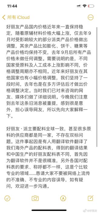 好麗友回應漲價和配料雙標:不同國家成本上漲影響不同