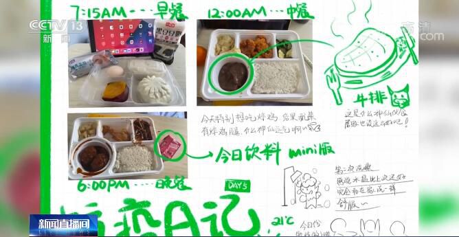 張譯丹:今天已經(jīng)是我出艙第四天了,還有水果和牛奶,這都是他們幫我湊的。