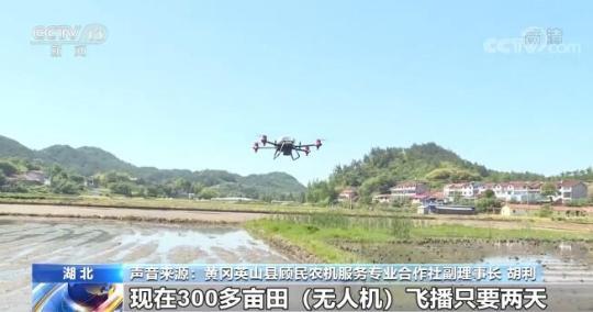 在襄陽宜城小河鎮(zhèn)的插秧基地,6臺高速插秧機在田里穿梭,全市20萬畝水稻實現(xiàn)了統(tǒng)一品種、機械插秧,占水稻種植面積的36%;在黃岡英山,當?shù)亟M織農(nóng)技人員通過無人機飛播、機械化插秧等方式將先進實用技術(shù)送到田邊地頭,護航水稻生產(chǎn)。