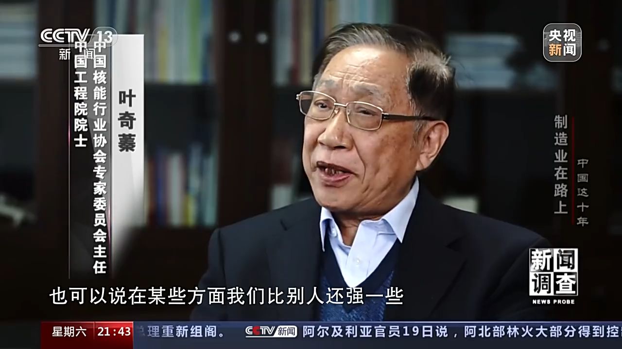 中國工程院院士 中國核能行業(yè)協(xié)會專家委員會主任 葉奇蓁:從總的技術(shù)水平可以這樣說,我們已經(jīng)從跟跑進入了并跑,也可以說在某些方面我們比別人還強一些。