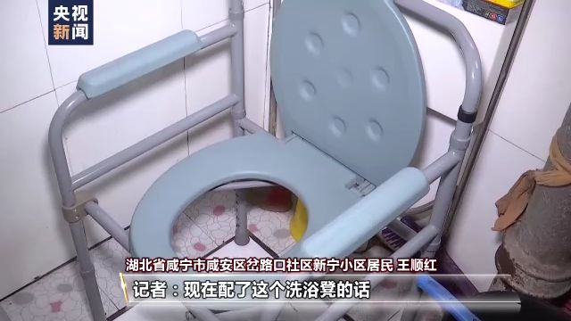 湖北省咸寧市的王能華老人患有帕金森病多年,政府免費為他進(jìn)行了居家適老化改造,還添置了護(hù)理床、坐便凳、洗澡椅等設(shè)施。