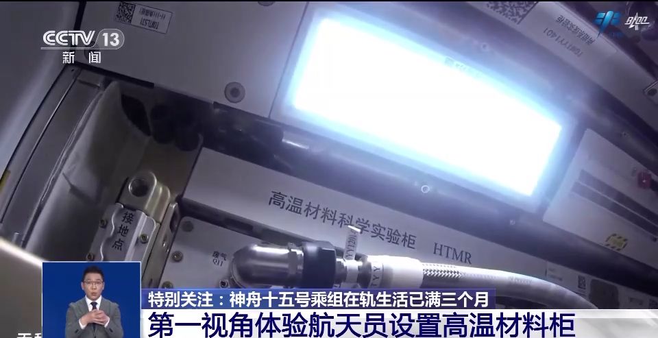 畫面中是航天員們正在設(shè)置高溫材料科學(xué)實(shí)驗(yàn)柜,這是支持在空間站微重力環(huán)境下進(jìn)行材料制備、加工、原位檢測、實(shí)時(shí)觀察和診斷于一體的新型實(shí)驗(yàn)裝置。最高加熱溫度能達(dá)到1600℃,溫度的穩(wěn)定度能達(dá)到±0.25℃,這個高溫材料科學(xué)實(shí)驗(yàn)柜的工作溫度、穩(wěn)定度和樣品數(shù)量、實(shí)時(shí)觀察成像技術(shù)均處于國際領(lǐng)先水平。