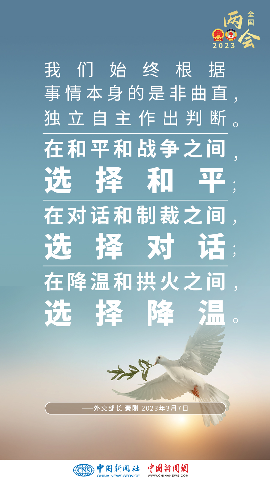 3月7日上午,十四屆全國人大一次會議新聞中心舉行記者會,邀請外交部長秦剛就“中國外交政策和對外關(guān)系”相關(guān)問題回答中外記者提問。一組海報帶您概覽記者會上的“中國外交好聲音”——