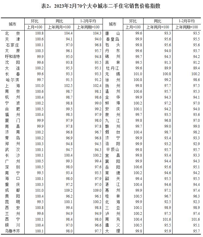 2月份,70個大中城市中,新建商品住宅銷售價格同比上漲城市有14個,比上月減少1個;二手住宅銷售價格同比上漲城市有7個,比上月增加1個。