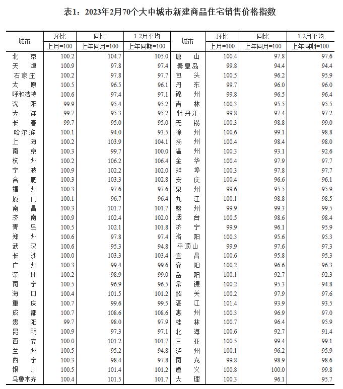 中新網(wǎng)3月16日電 16日,國家統(tǒng)計局公布2023年2月份70個大中城市商品住宅銷售價格變動情況。國家統(tǒng)計局城市司首席統(tǒng)計師繩國慶解讀表示,2023年2月份,隨著政策效果逐步顯現(xiàn)及住房需求進一步釋放,70個大中城市中商品住宅銷售價格環(huán)比上漲城市個數(shù)繼續(xù)增加,各線城市商品住宅銷售價格環(huán)比總體上漲,一線城市商品住宅銷售價格同比上漲、二三線城市同比降幅收窄。