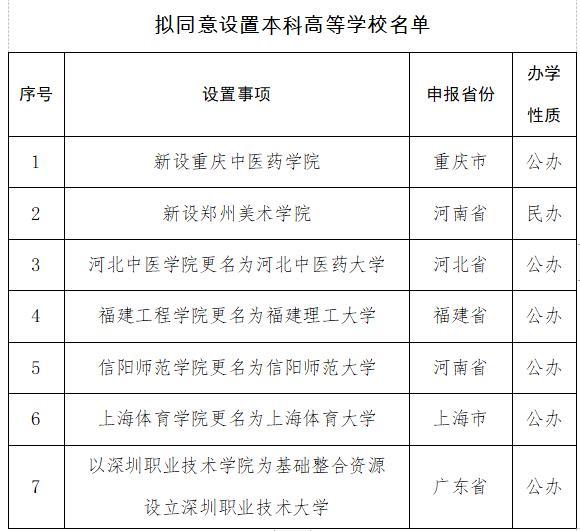 中新網(wǎng)5月22日電 22日,教育部網(wǎng)站發(fā)布關于擬同意設置本科高等學校的公示,經(jīng)第八屆全國高等學校設置評議委員會專家考察評議,教育部黨組會議審議,擬同意設置重慶中醫(yī)藥學院等7所學校,現(xiàn)予公示。公示時間為2023年5月22日至5月26日。