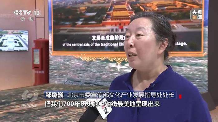 北京市委宣傳部文化產(chǎn)業(yè)發(fā)展指導(dǎo)處處長鄒璐巍:運(yùn)用了衛(wèi)星遙感、裸眼3D相關(guān)技術(shù),把我們700年歷史的中軸線最美地呈現(xiàn)出來。