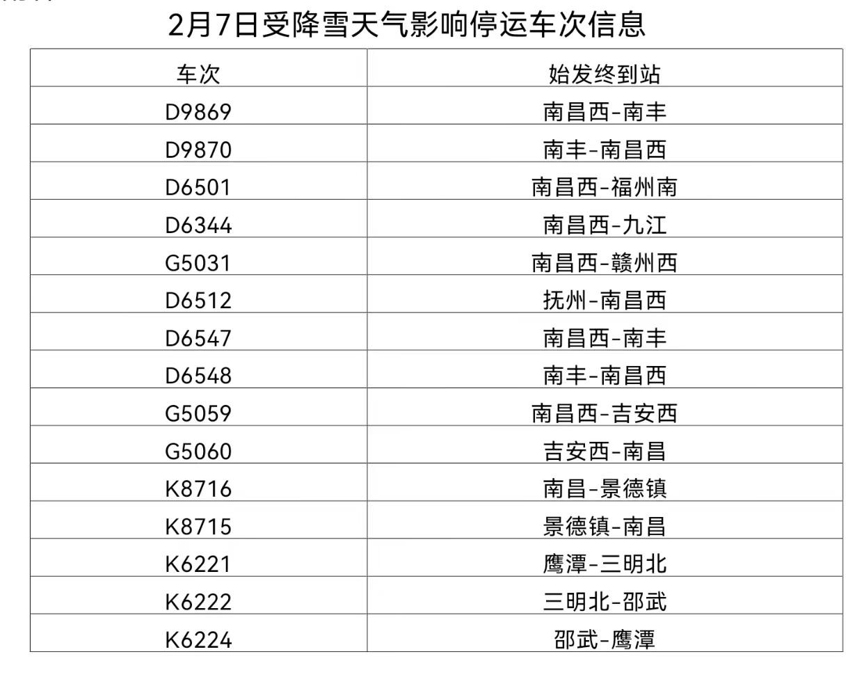受雨雪冰凍影響 今日國鐵南昌路局部分旅客列車停運(yùn)