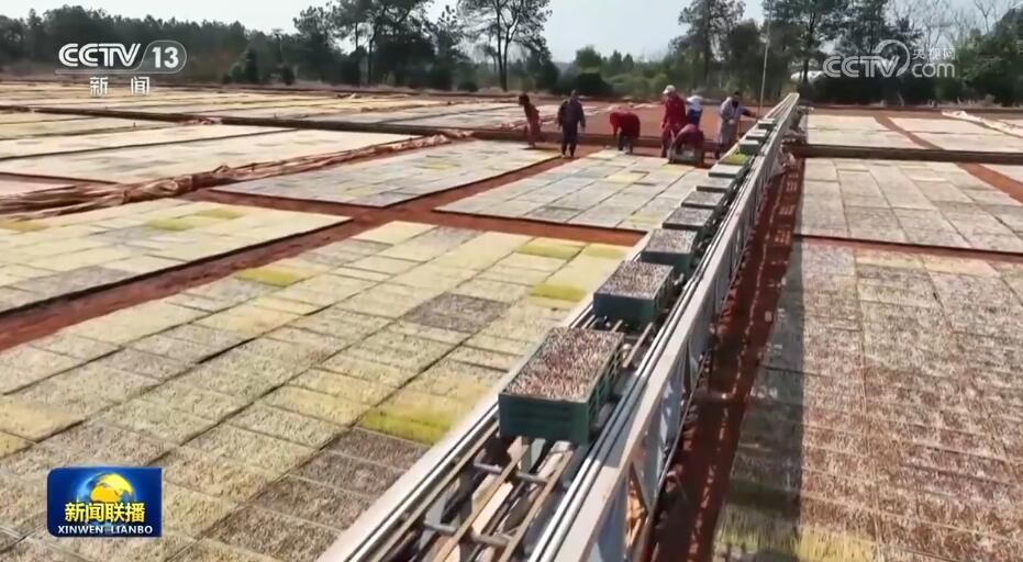 當前,南方早稻育秧進入高峰期。在江西余江的育秧中心,機械化育秧流水線加緊作業(yè),一條生產(chǎn)線一個小時就能育秧2400盤。工廠化育秧降低了秧苗的病蟲害,保障了秧苗的存活率,為實現(xiàn)水稻高產(chǎn)提供了有效保障。目前,江西早稻集中育秧已經(jīng)超過1000萬畝。