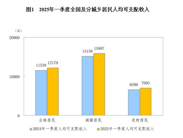 一季度,全國居民人均可支配收入12179元,比上年同期名義增長5.5%,扣除價格因素,實際增長5.6%。分城鄉(xiāng)看,城鎮(zhèn)居民人均可支配收入15887元,增長(以下如無特別說明,均為同比名義增長)4.9%,扣除價格因素,實際增長5.0%;農(nóng)村居民人均可支配收入7003元,增長6.2%,扣除價格因素,實際增長6.5%。
