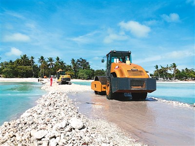在基里巴斯首都塔拉瓦,中國企業(yè)正在為當?shù)孛癖娦拗蛔銟颉?/p>