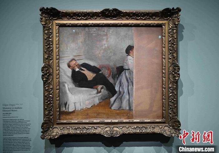 圖為展覽中展出的德加所作油畫(huà)《馬奈夫婦》,該畫(huà)成為導(dǎo)致馬奈與德加關(guān)系瓦解的導(dǎo)火索。 中新社記者 李洋 攝