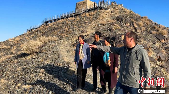 李世宗烈士孫子孫女一行在當(dāng)年伊吾四十天保衛(wèi)戰(zhàn)戰(zhàn)斗發(fā)生地勝利峰?!⊥鹾?攝