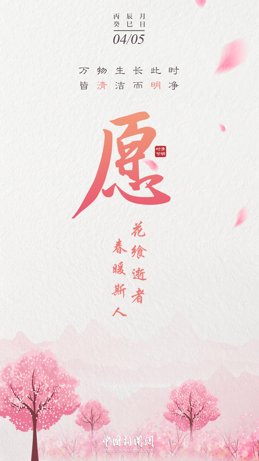 萬物生長此時,皆清潔而明凈,故謂之清明。桐花開,虹始見,草長鶯飛時,攜好友二三逐紅花,穿垂柳,紛紛春雨和縷縷清風化盡了路上行人的哀愁事。今日清明,愿萬里氣清景明,你我心清目明。