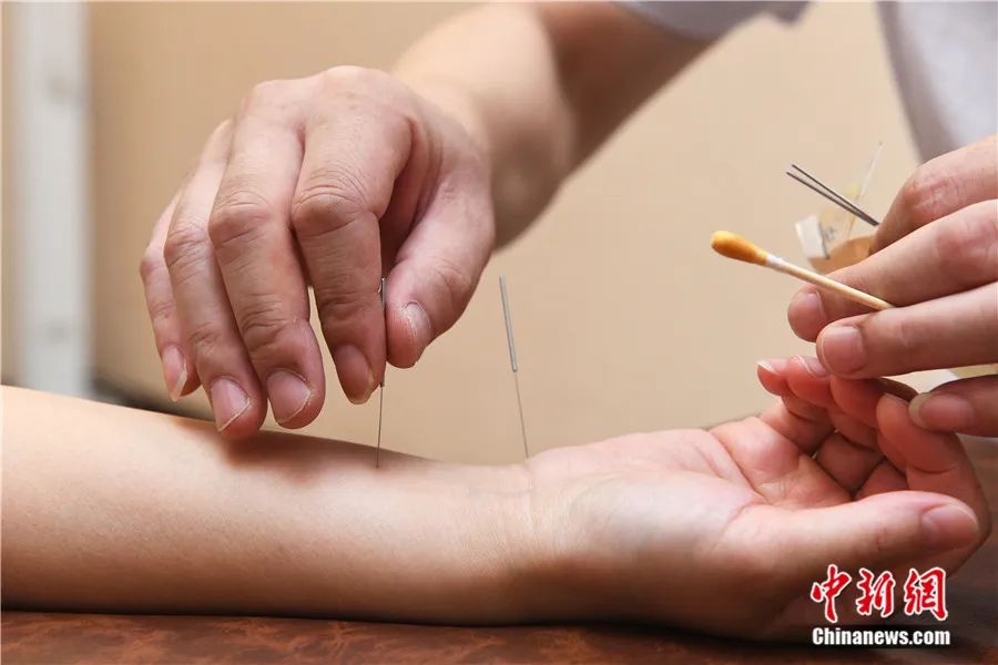 河北石家莊,醫(yī)務(wù)人員為市民針灸。賈敏杰 攝