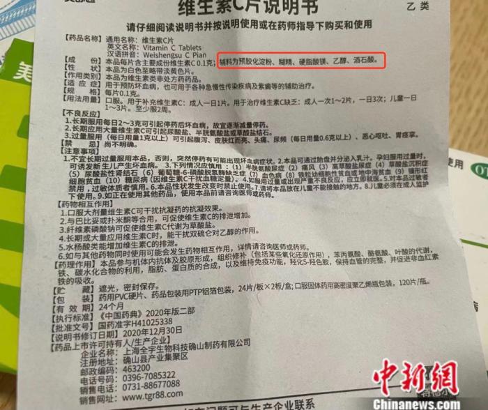 圖為藥品維生素C片說(shuō)明書。 韋香惠 攝