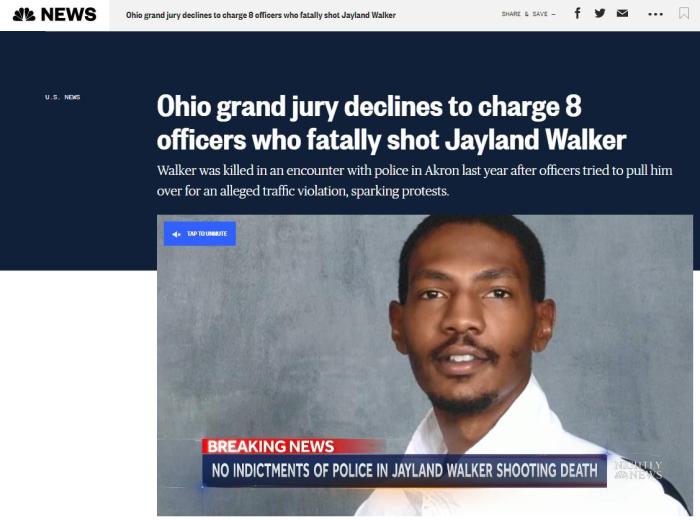 NBC指出,沃克之死引發(fā)了阿克倫數(shù)日的示威活動,并再次引發(fā)了關(guān)于警察針對非裔暴力執(zhí)法的抗議。