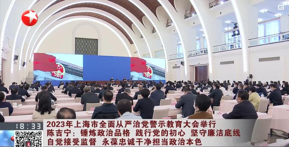 視頻截圖:2023年上海市全面從嚴治黨警示教育大會