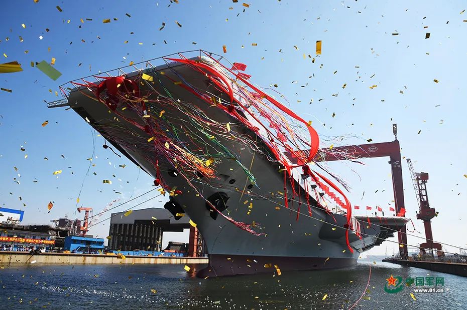 資料圖:中國(guó)第二艘航空母艦(中國(guó)首艘國(guó)產(chǎn)航母)下水儀式在中國(guó)船舶重工集團(tuán)公司大連造船廠舉行。圖片來(lái)源:中國(guó)軍網(wǎng)